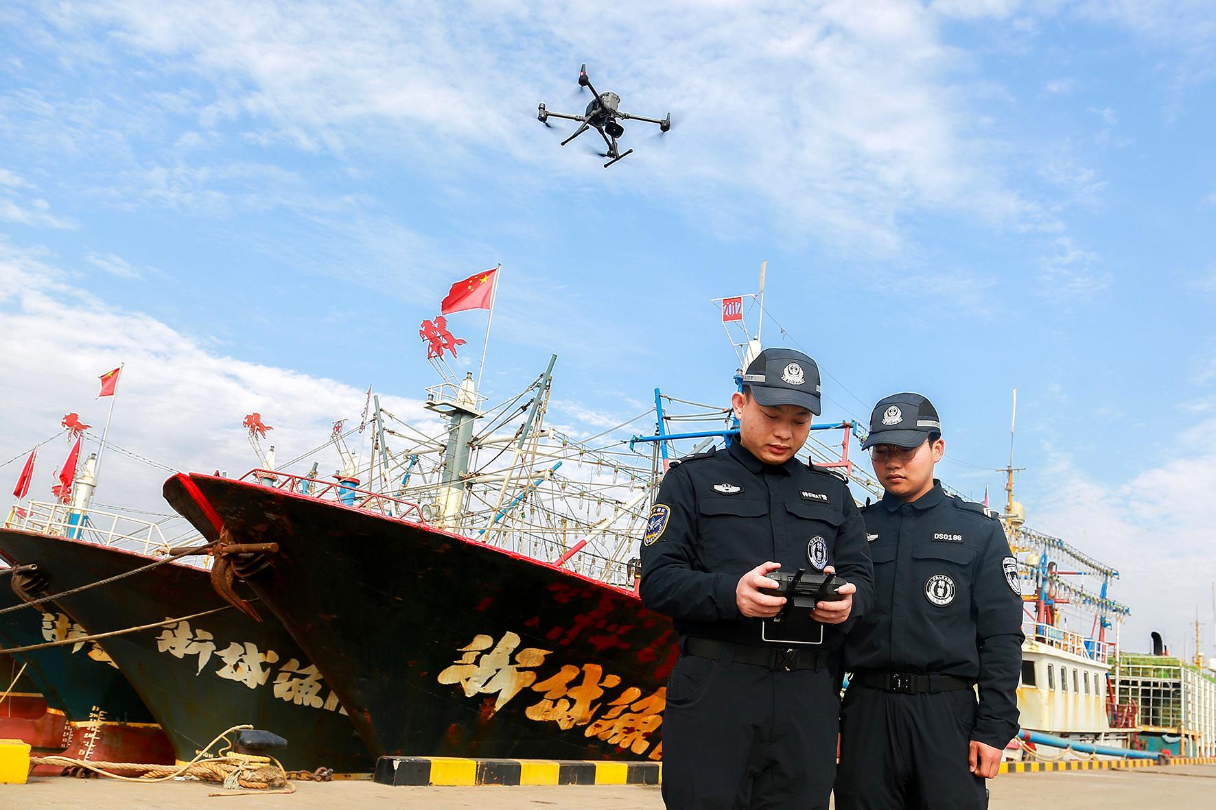1月15日,浙江省岱山縣公安局巡特警大隊“魚鷹”戰(zhàn)隊民警輔警,結(jié)合“冬季行動”,利用警用無人機對轄區(qū)漁港碼頭進(jìn)行空中巡查,加強轄區(qū)海上治安防控工作力度,守護(hù)漁船民安全生產(chǎn)。