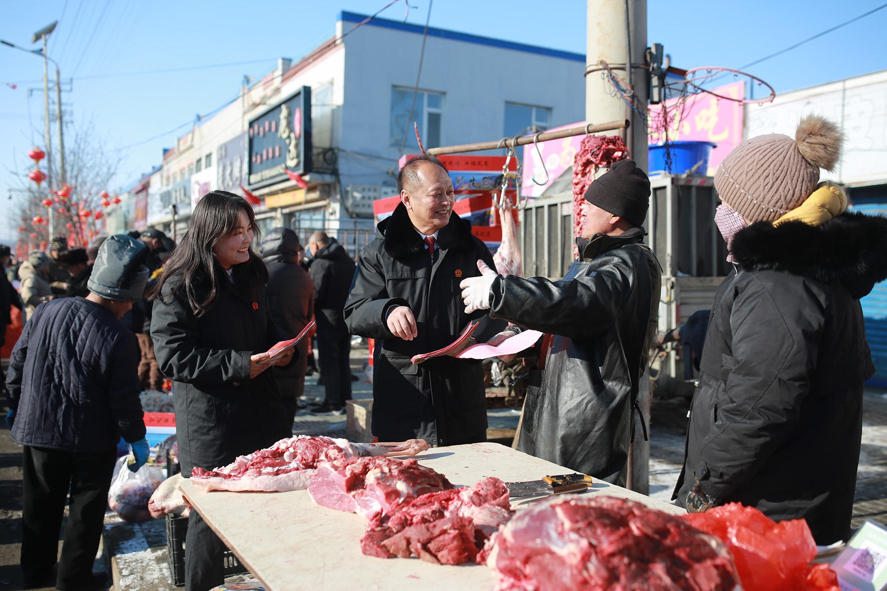 1月14日,吉林省伊通滿族自治縣人民法院營(yíng)城子法庭法官走進(jìn)集市,宣講消費(fèi)者權(quán)益保護(hù)法等法律法規(guī)。