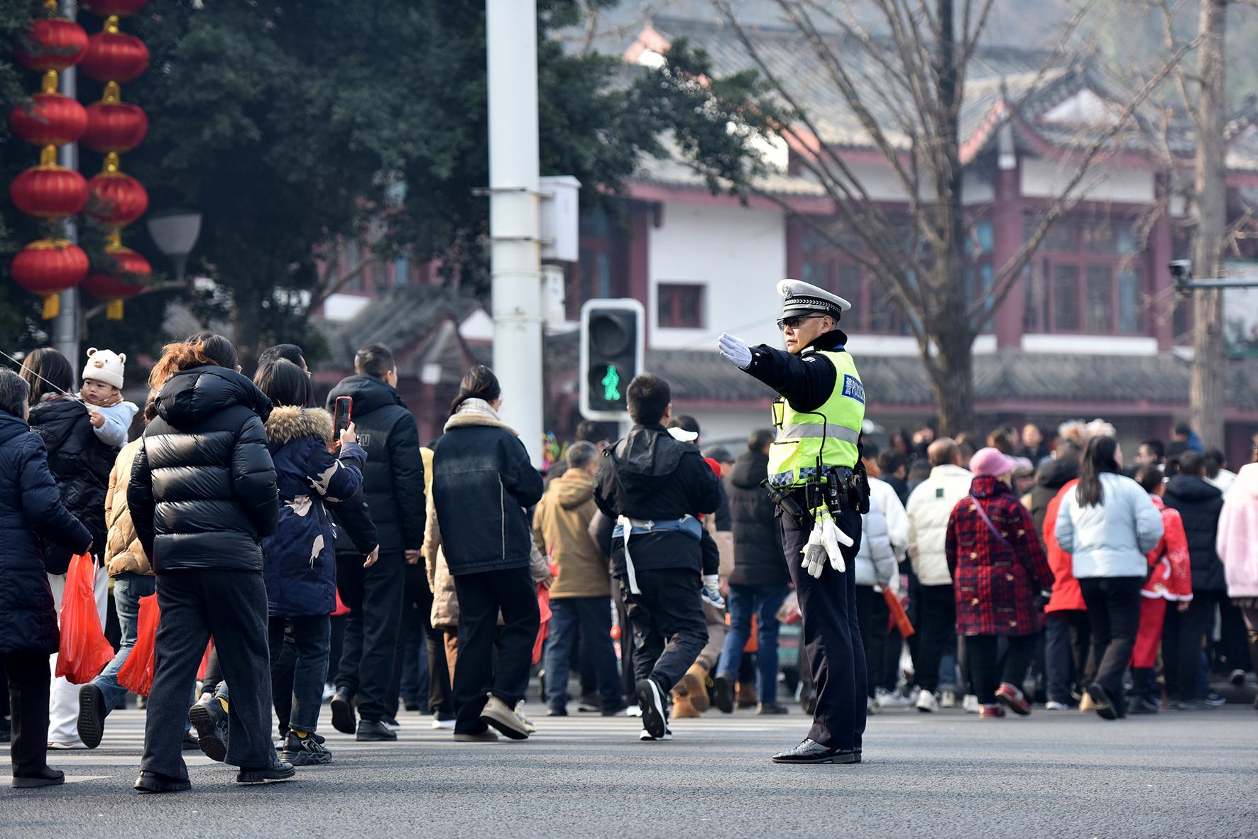 1月29日,大年初一。四川省綿陽市公安局交警支隊(duì)直屬一大隊(duì)加強(qiáng)了轄區(qū)民俗活動(dòng)、商業(yè)區(qū)域周邊交通秩序管控力度,確保道路安全暢通。