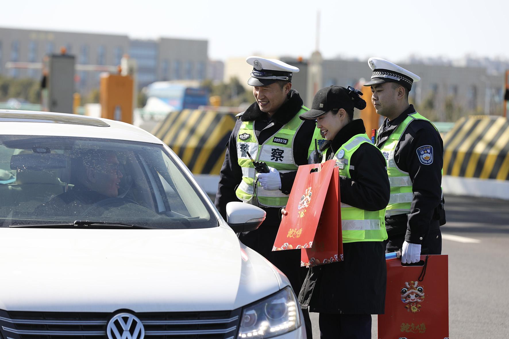 1月28日除夕,安徽省合肥市方興高速道口,交警高速一大隊(duì)民警堅(jiān)守崗位,提醒駕乘人員行車注意安全,為春運(yùn)保駕護(hù)航。