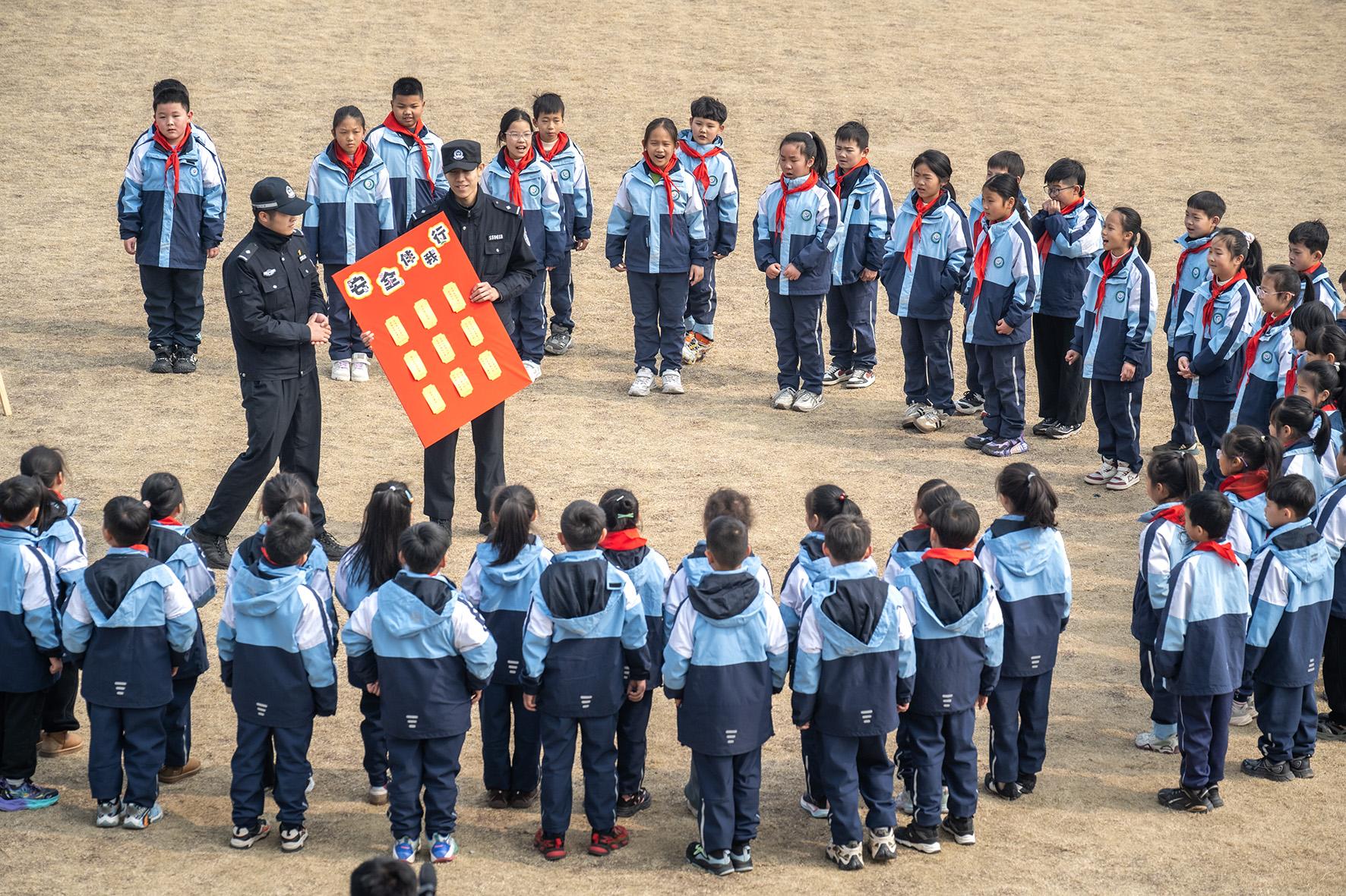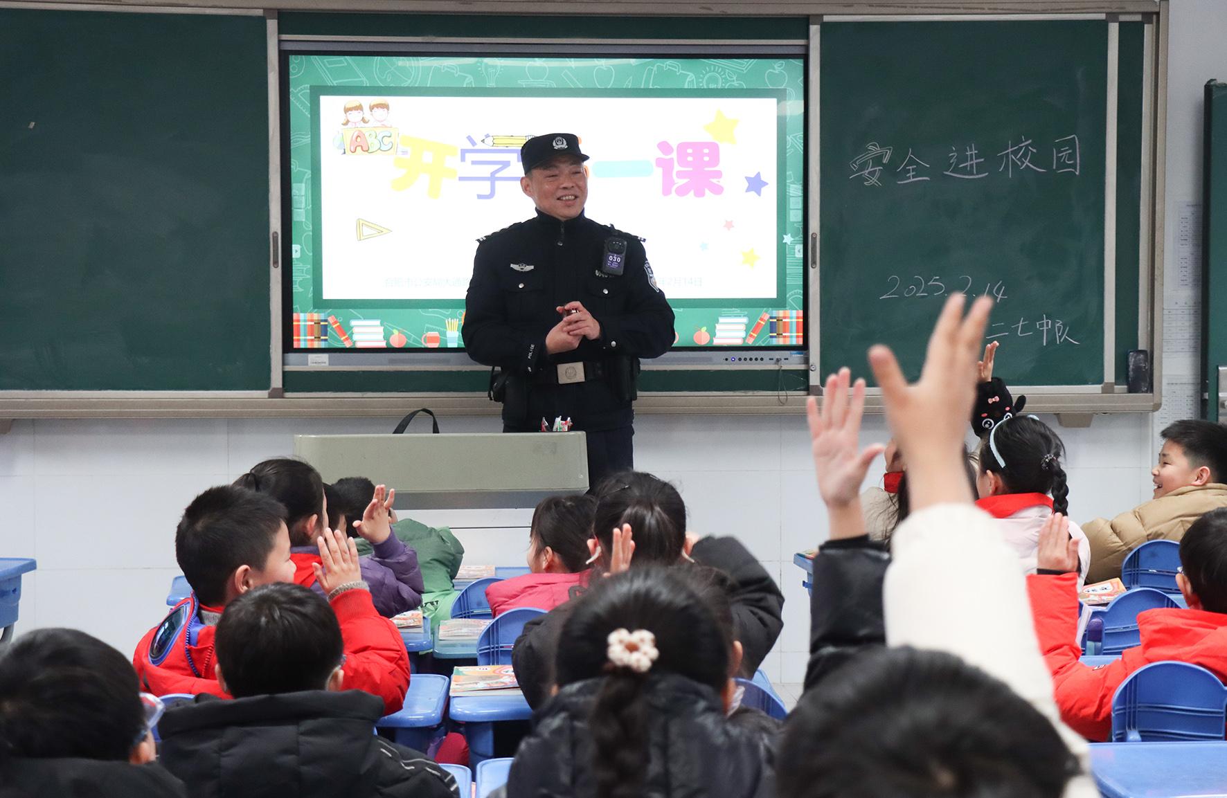 2月14日,安徽省合肥市公安局瑤海分局大通路派出所組織警力走進轄區(qū)滁州路小學(xué)開展“開學(xué)第一課”活動。