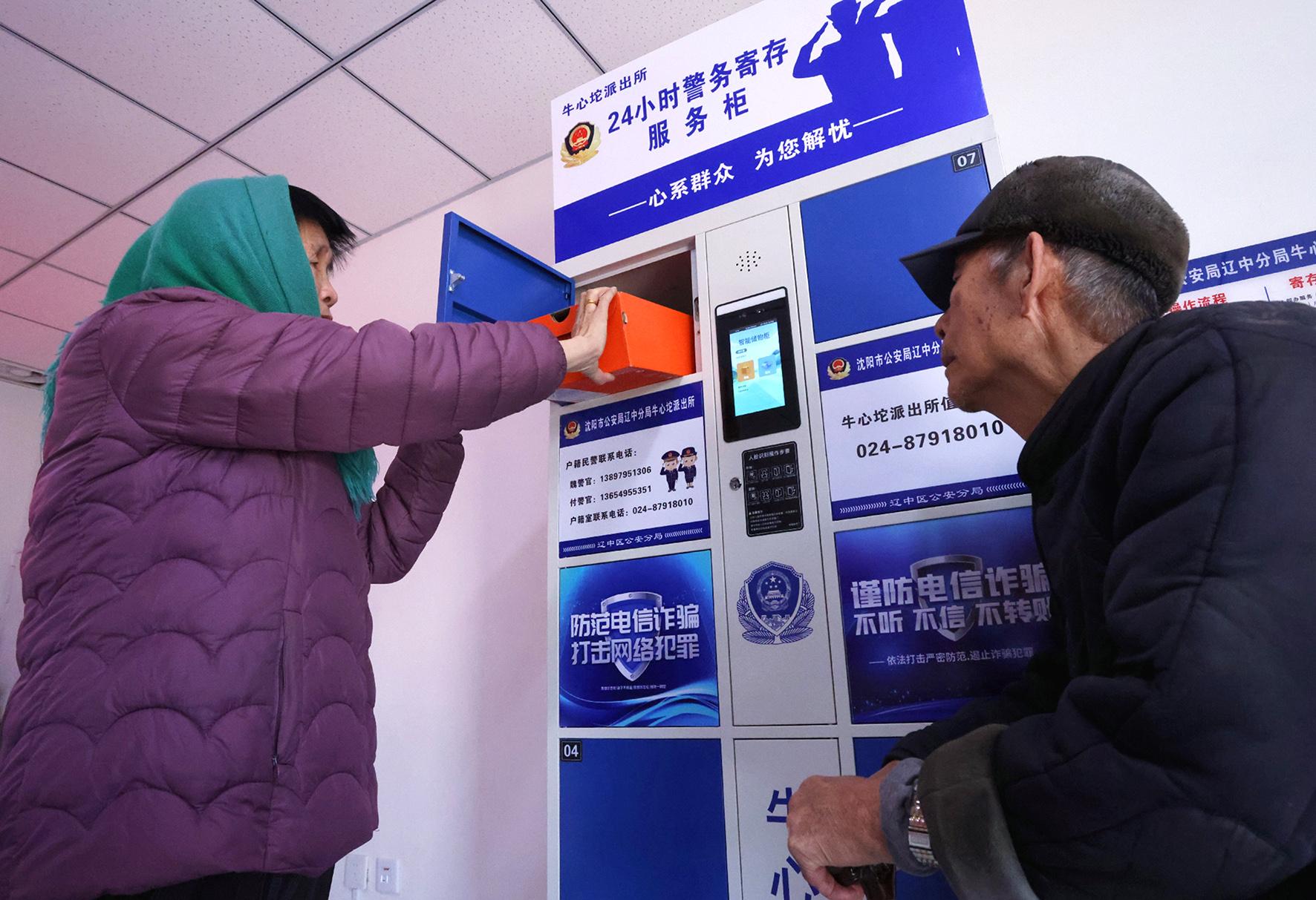 圖為2月26日,村民在警務(wù)寄存服務(wù)柜順利取回已辦好的證件材料及物品。