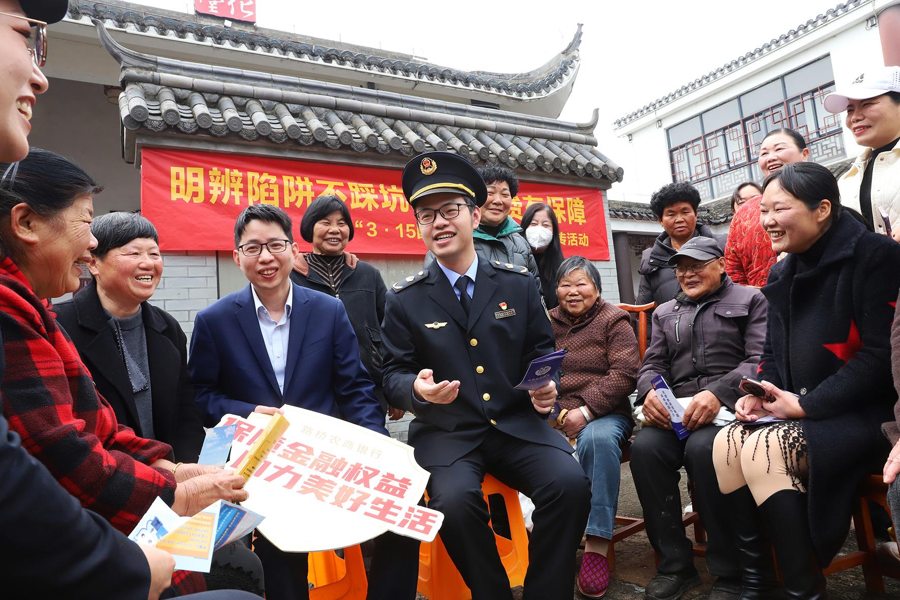 3月11日,浙江省臺(tái)州市路橋區(qū)金清鎮(zhèn)市場(chǎng)監(jiān)督管理所工作人員在高升村開展消費(fèi)維權(quán)和老年人防詐騙宣傳。