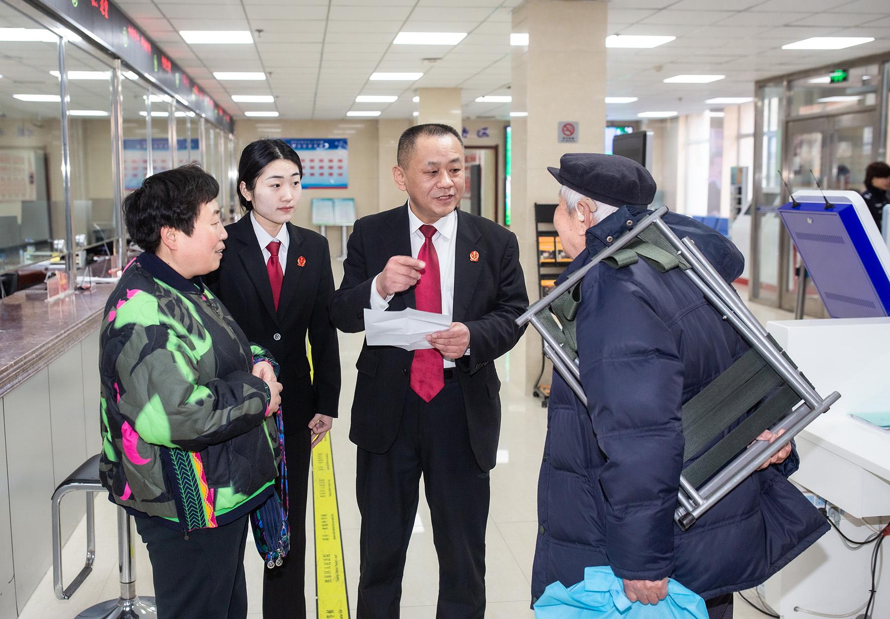圖為3月17日,立案庭工作人員接待來訪群眾,解答問題。