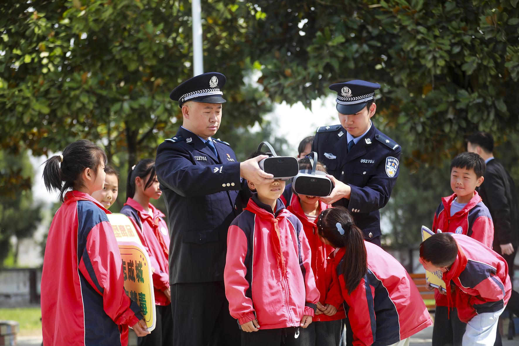 圖為民警通過VR眼鏡給學(xué)生講解禁毒知識。
