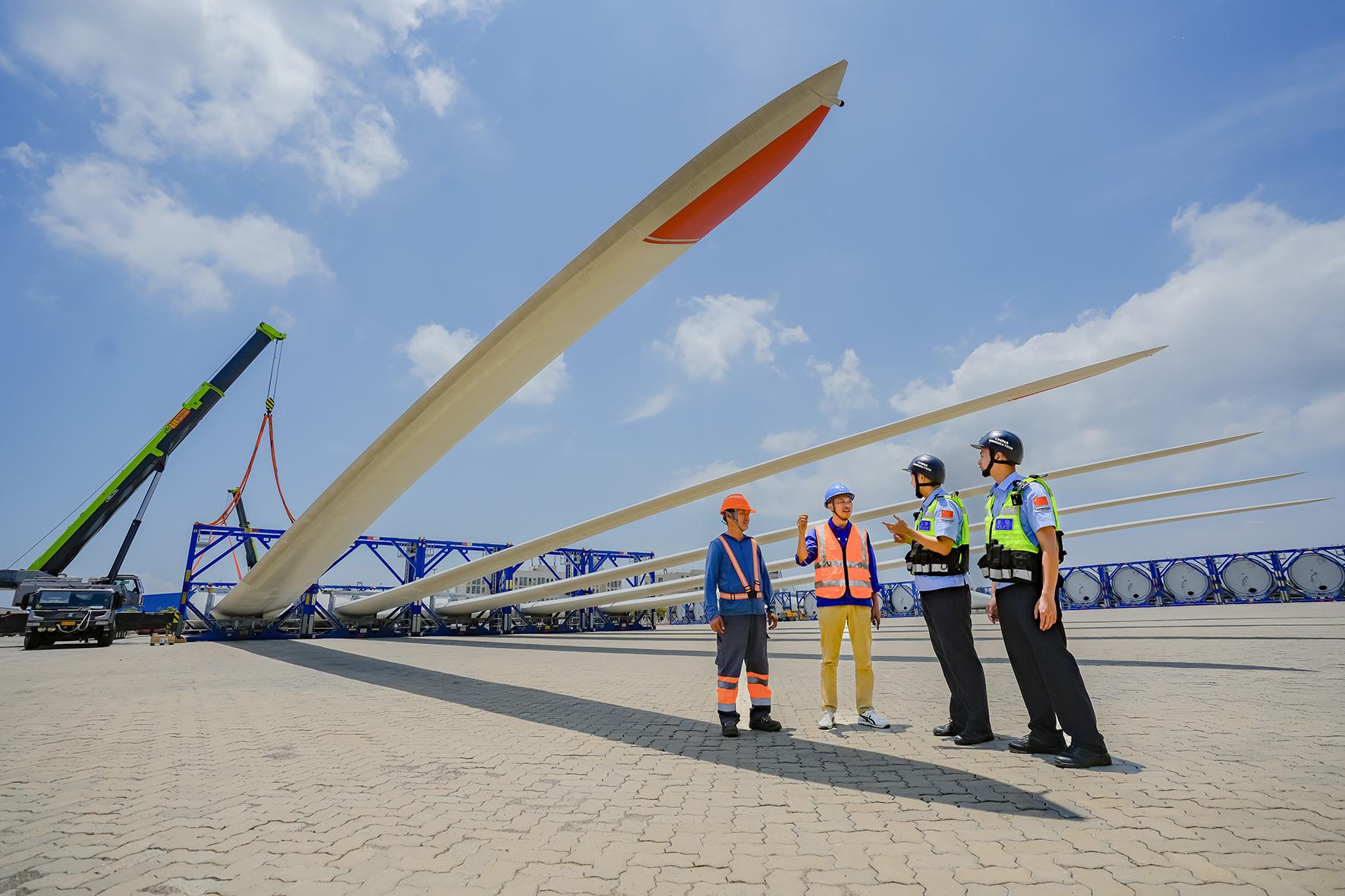 5月13日,福建省福州港江陰港區(qū),廈門(mén)邊檢總站福清邊檢站落實(shí)風(fēng)電設(shè)備裝運(yùn)通關(guān)定制化服務(wù),實(shí)現(xiàn)單船在港作業(yè)時(shí)間從3天縮短至2天,確保風(fēng)電設(shè)備裝運(yùn)“零延時(shí)”。