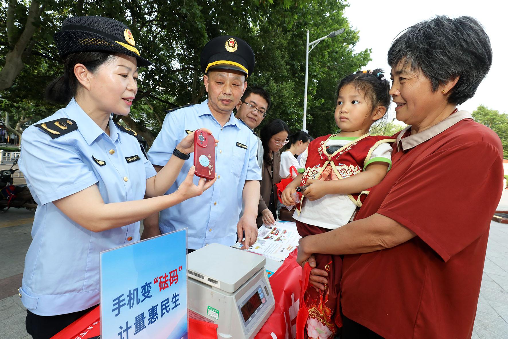 5月16日,在“世界計(jì)量日”到來之際,安徽省淮北市市場監(jiān)督管理部門在淮海路舉行“手機(jī)變砝碼 計(jì)量惠民生”電子計(jì)價(jià)秤防作弊科普宣傳活動。