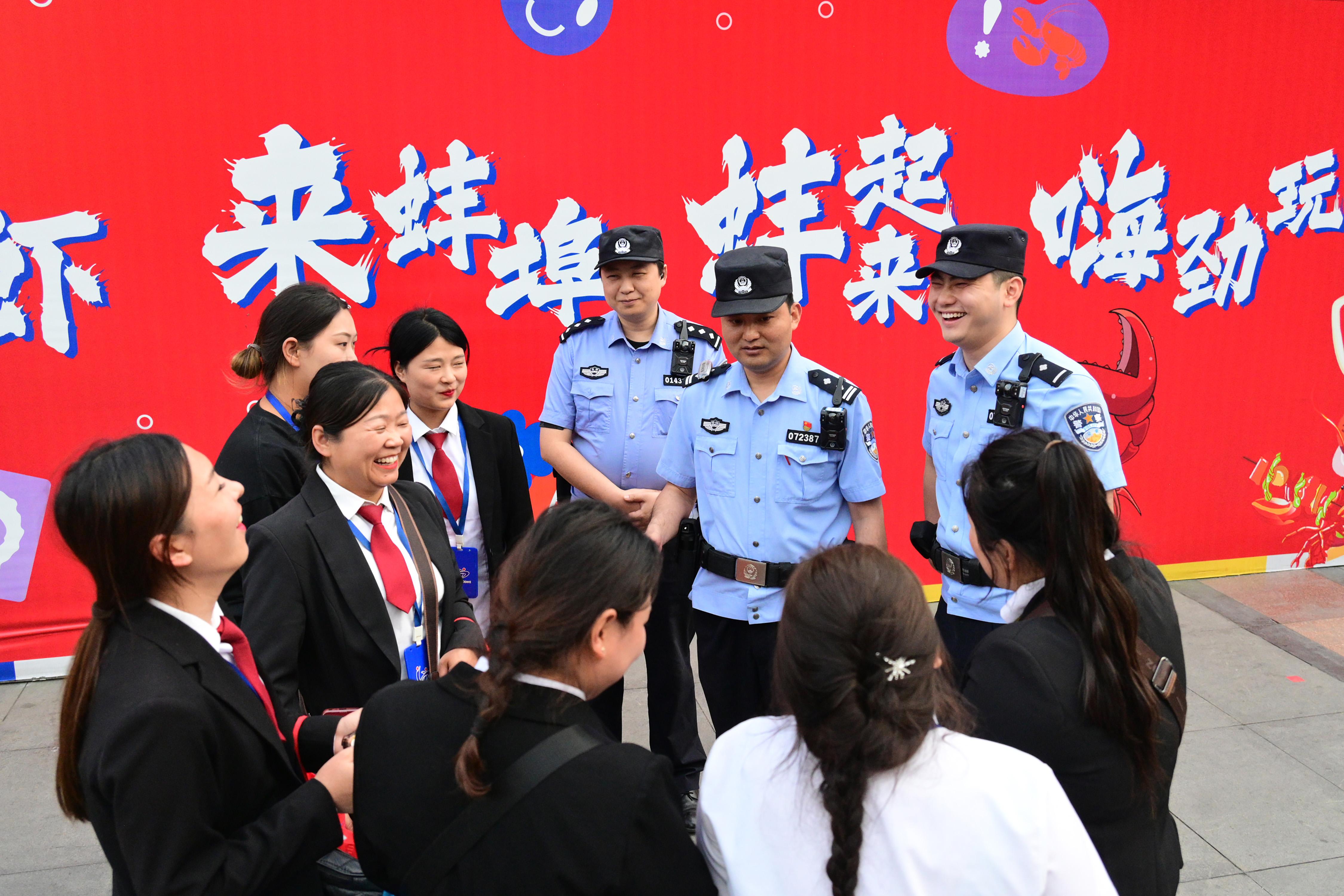 5月23日,安徽省蚌埠市公安局蚌山分局民警輔警在龍蝦節(jié)活動(dòng)現(xiàn)場執(zhí)勤,并開展安全宣傳。
