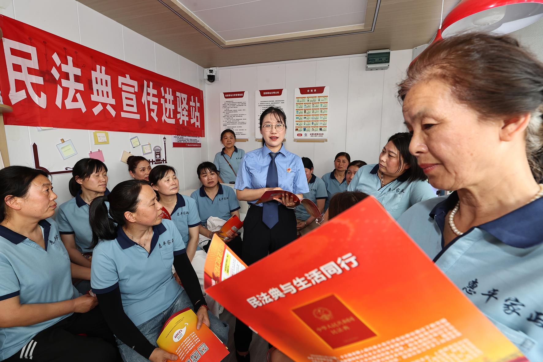 5月27日,安徽省淮北市相山區(qū)總工會聯(lián)合相山區(qū)人民檢察院走進(jìn)工會驛站向家政服務(wù)員宣傳民法典,增強(qiáng)家政服務(wù)員等新就業(yè)形態(tài)勞動者依法維護(hù)自身合法權(quán)益的意識和能力。