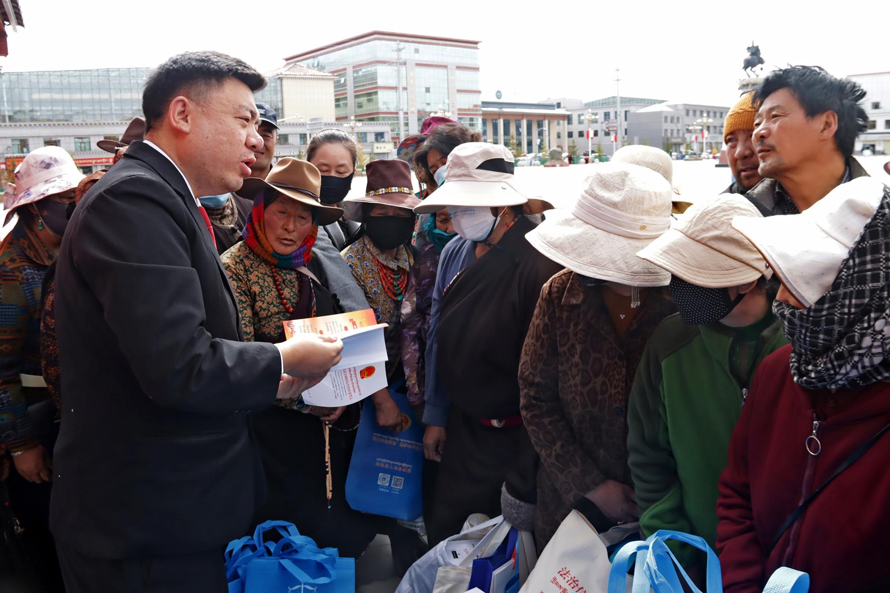 5月29日,青海省果洛州瑪沁縣人民法院法官在人民廣場開展“民法典進(jìn)社區(qū) 權(quán)益保障零距離”普法宣傳活動(dòng)。