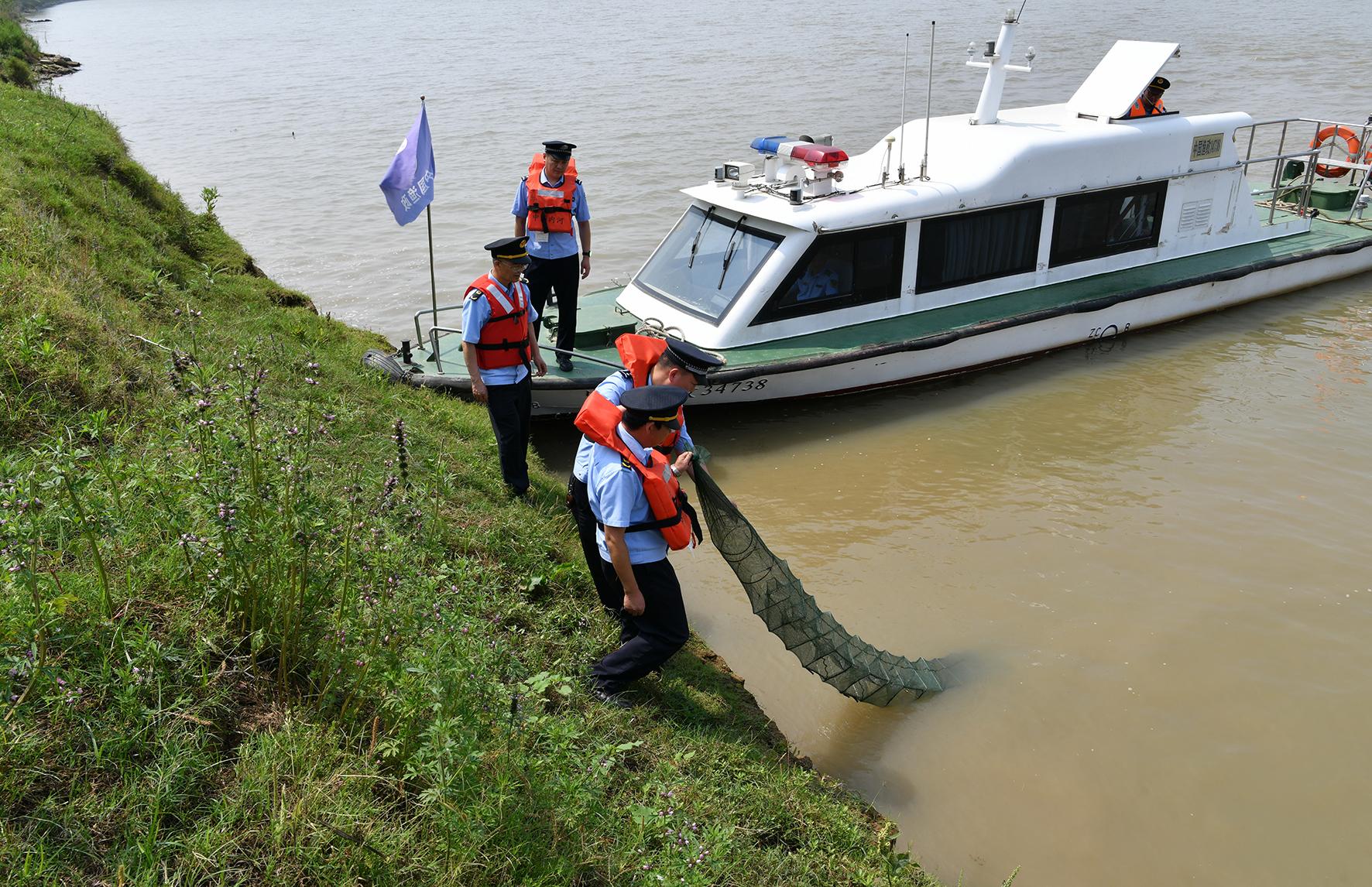 5月29日,安徽省阜南縣公安局森林民警和農(nóng)業(yè)執(zhí)法人員在淮河流域曹集鎮(zhèn)段收繳非法捕撈漁具。阜南縣公安局聯(lián)合縣農(nóng)業(yè)執(zhí)法大隊、市場監(jiān)督管理局等部門開展淮河流域水上聯(lián)合巡查行動,筑牢淮河生態(tài)環(huán)境安全屏障。