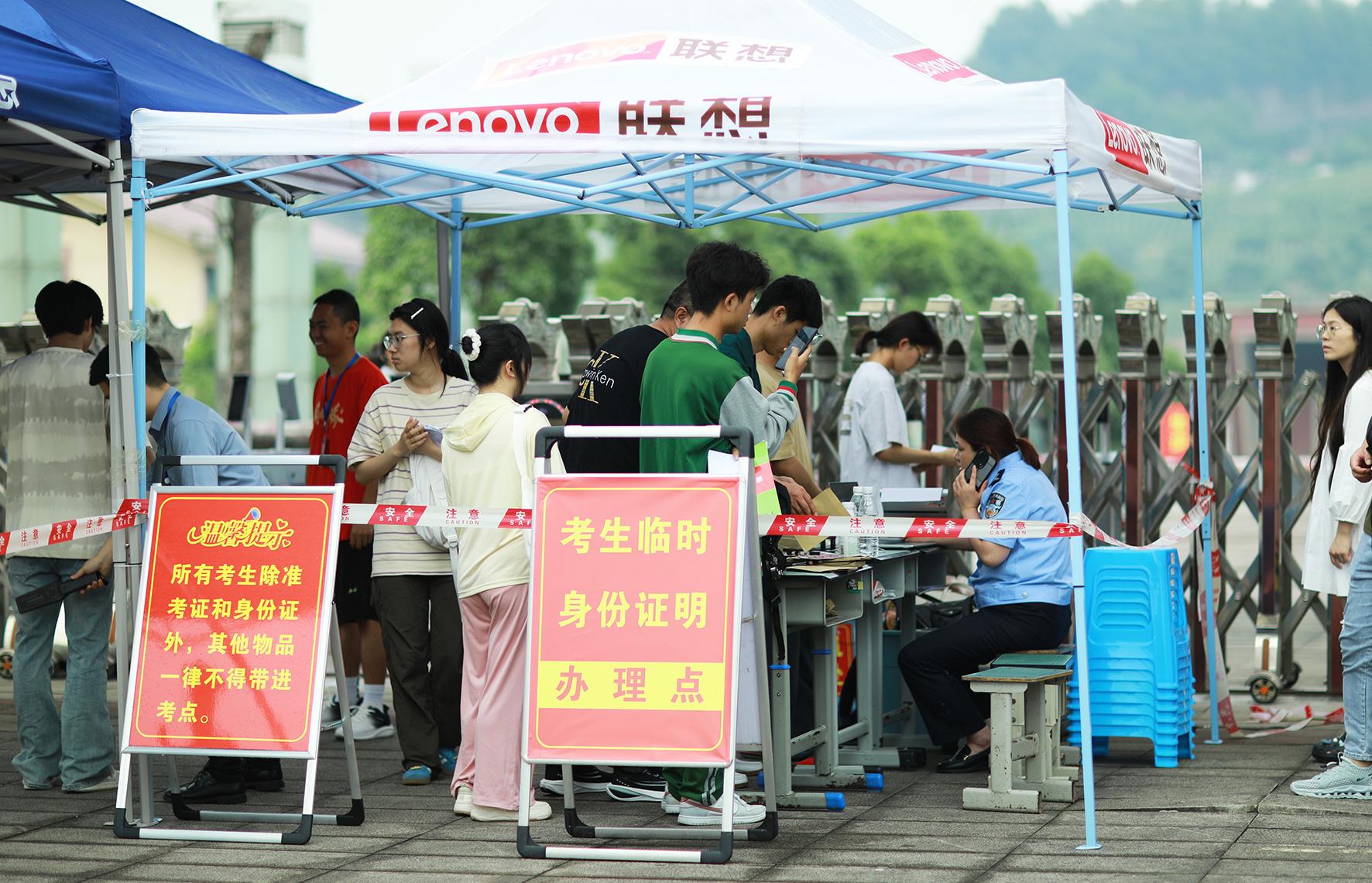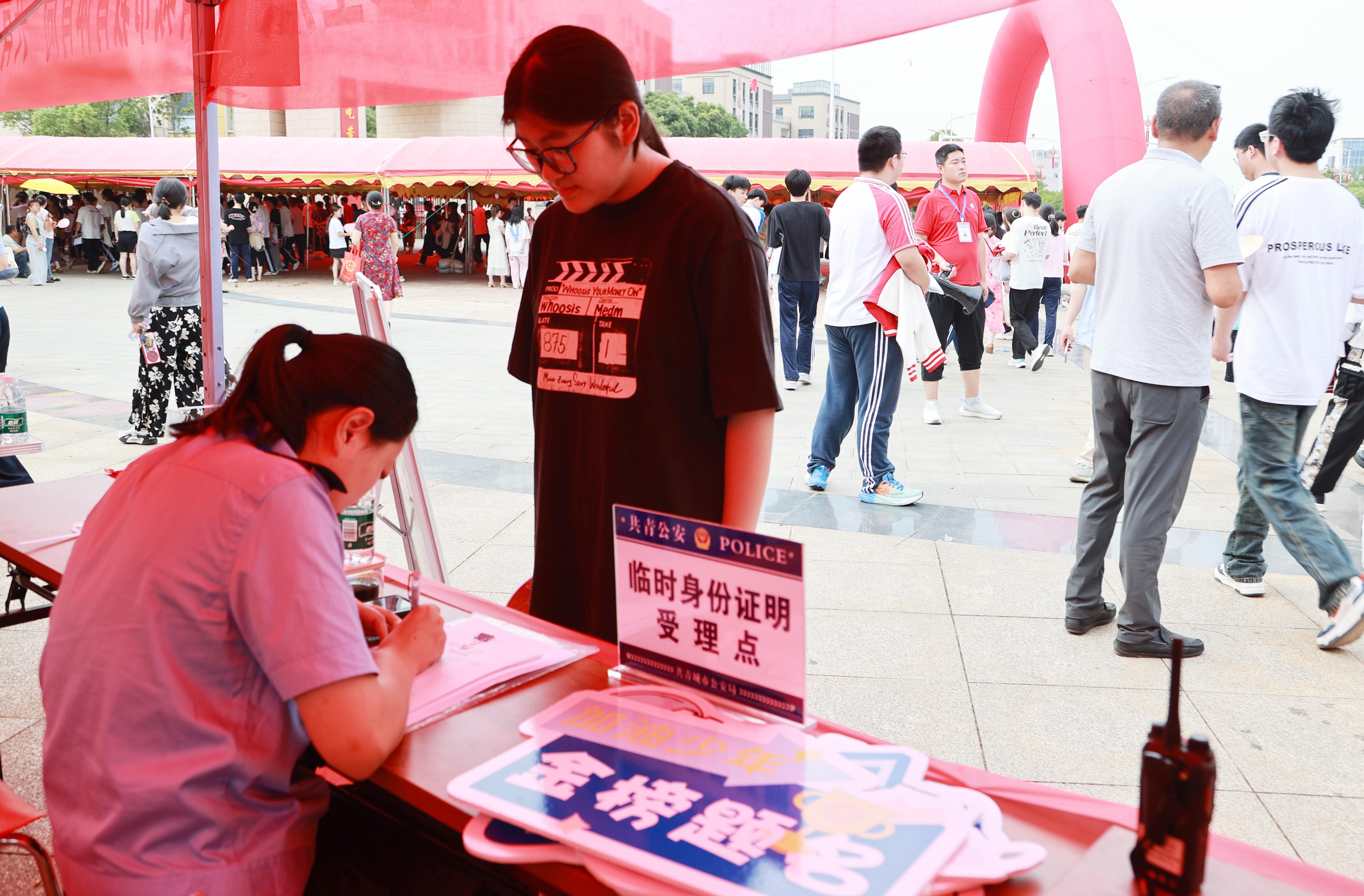 6月7日,江西省共青城市公安局在考點設(shè)立臨時身份證明受理點。