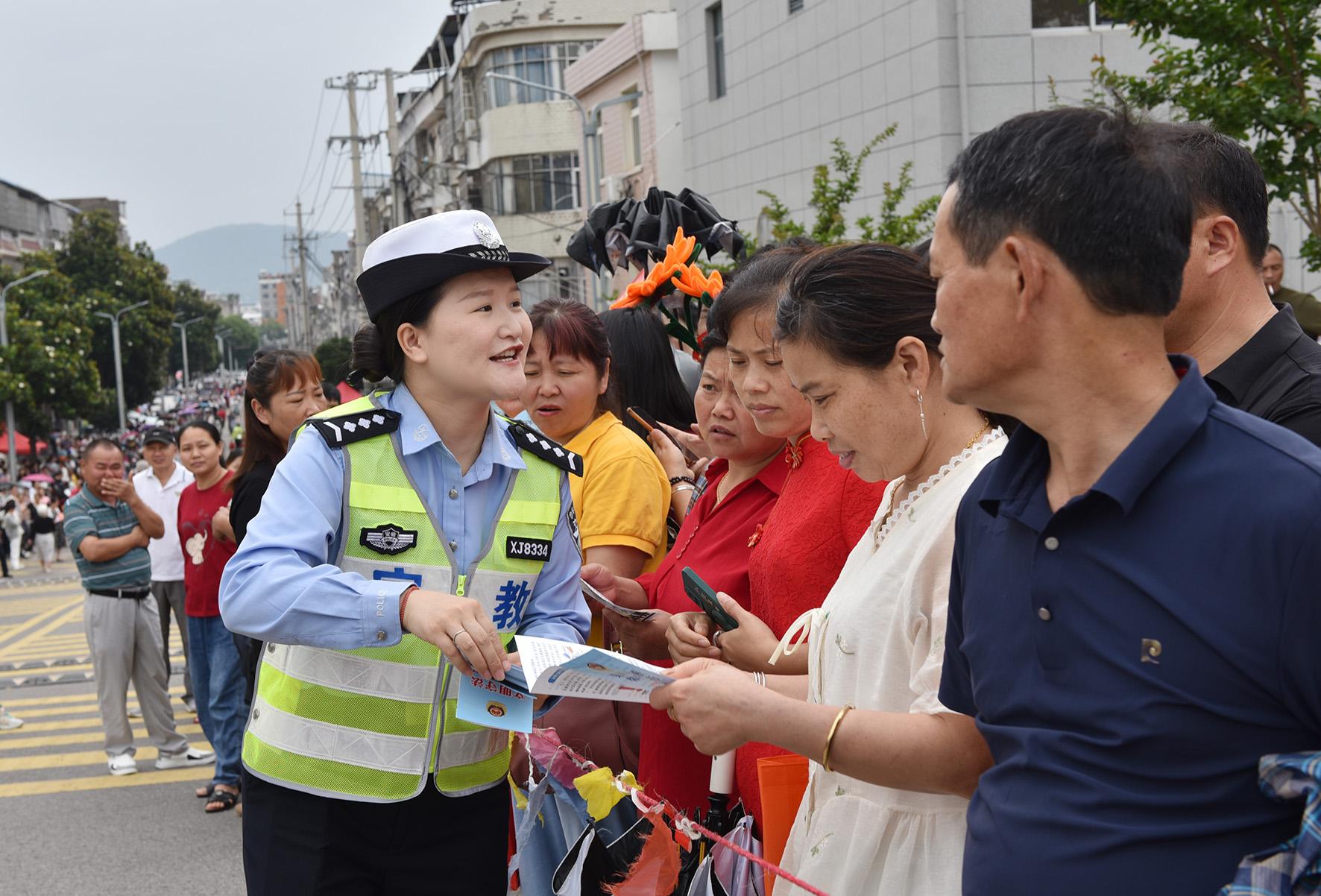 6月9日,安徽省宿松縣公安局交警大隊護(hù)考民輔警向家長宣傳防交通事故 、防溺水、防網(wǎng)絡(luò)詐騙知識。
