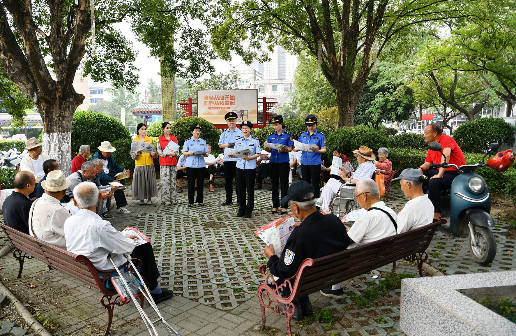 6月12日,安徽省阜南縣公安局經(jīng)偵民警聯(lián)合市場監(jiān)督管理執(zhí)法人員、城市管理執(zhí)法人員在街心公園向群眾開展“守護(hù)錢袋子 護(hù)好幸福家”宣傳活動。