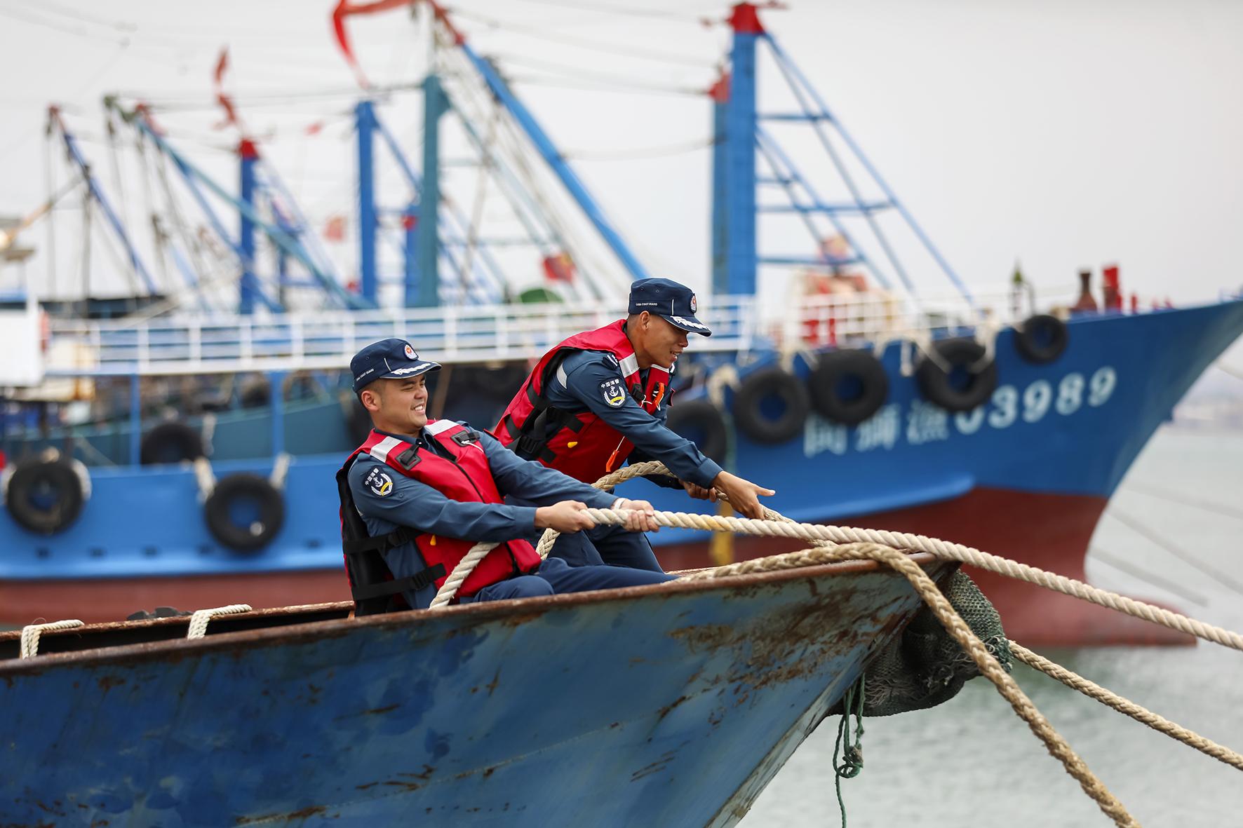 為應對今年1號臺風蝴蝶的影響,6月11日,福建泉州海警局石獅工作站在永寧鎮(zhèn)梅林一級漁港開展港灣清查行動,通過“執(zhí)法艇巡邏+海防智慧管理平臺運用”等“傳統(tǒng)人工+智慧云端”協(xié)同模式,全力維護伏休期間臺風季節(jié)漁業(yè)生產(chǎn)安全秩序。