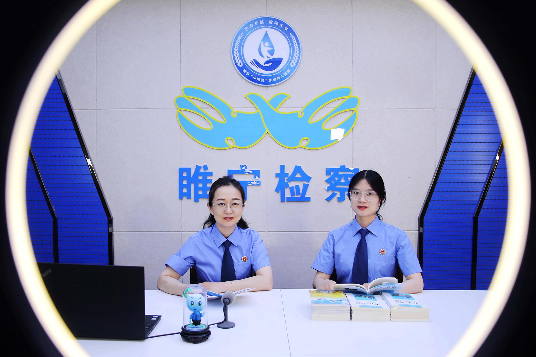 6月16日,江蘇省睢寧縣檢察院從事未成年人檢察工作的干警正在錄制暑期版的防溺水、防性侵害等主題的“安全小課堂”,為孩子們暑期系上“安全繩”。