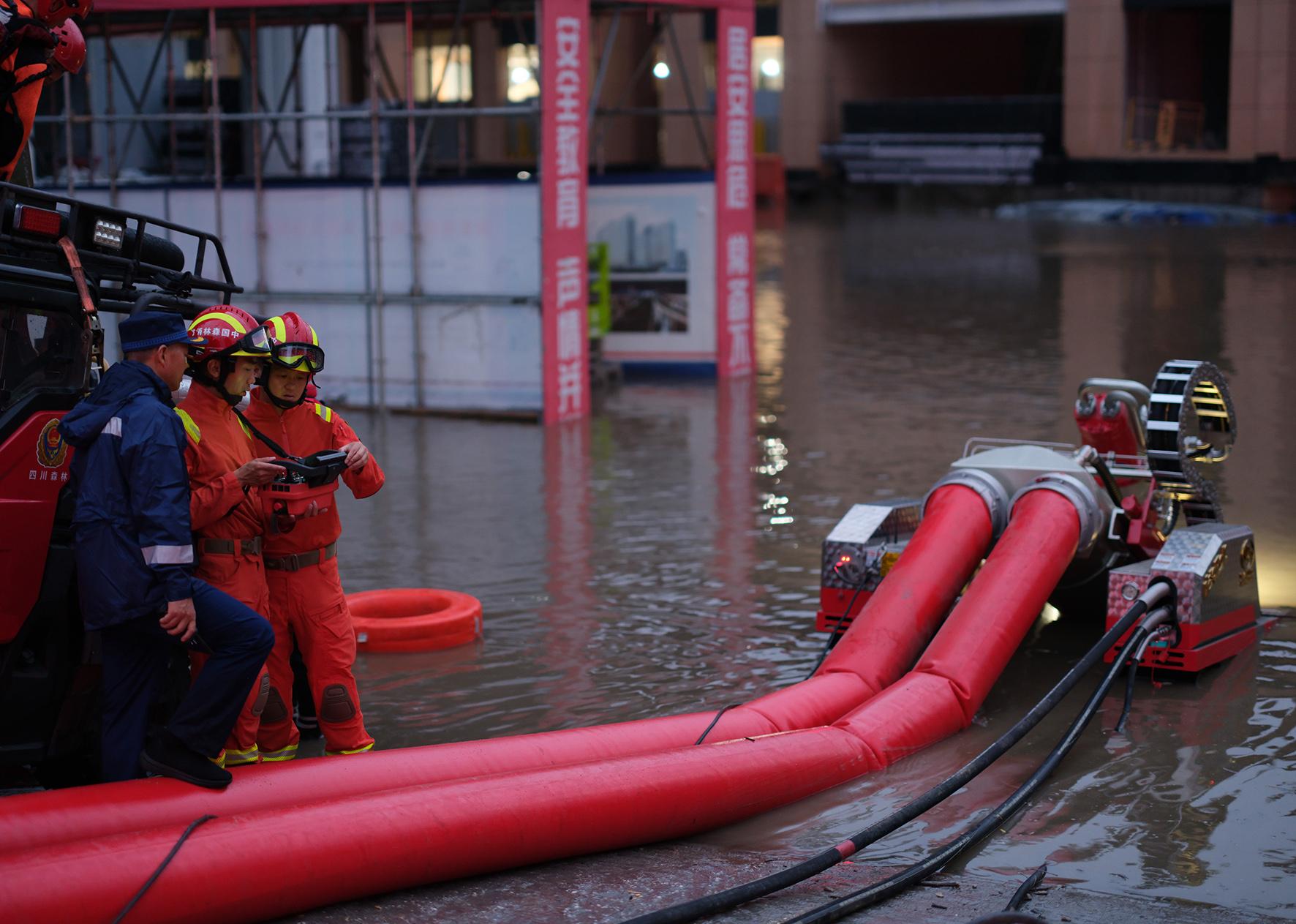 7月3日,成都暴雨致市區(qū)部分區(qū)域出現(xiàn)內(nèi)澇。四川省森林消防總隊特勤大隊80名消防員攜帶大功率水泵、應急排澇車、排澇機器人等救援裝備,連夜在成都市錦江區(qū)開展排澇救援工作。
