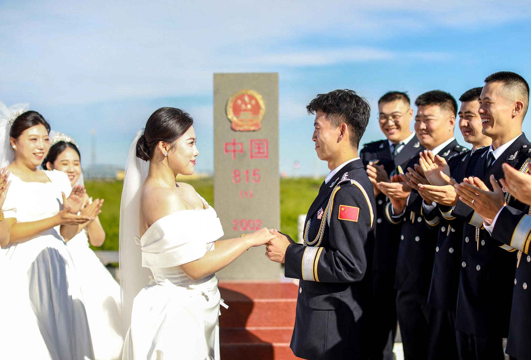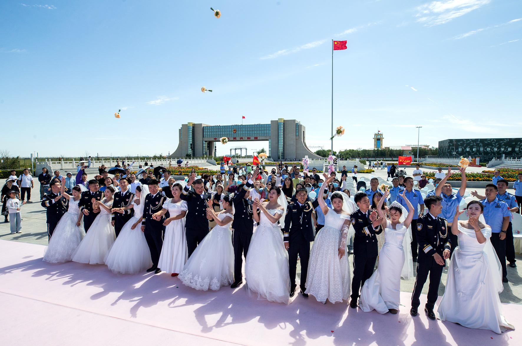 8月16日,內(nèi)蒙古出入境邊防檢查總站二連出入境邊防檢查站隆重舉辦第六屆“愛在北疆 情定國門”集體婚禮,9對新人在象征著國家主權(quán)與尊嚴(yán)的巍峨國門前,許下了“執(zhí)子之手 與子偕老”的誓言。