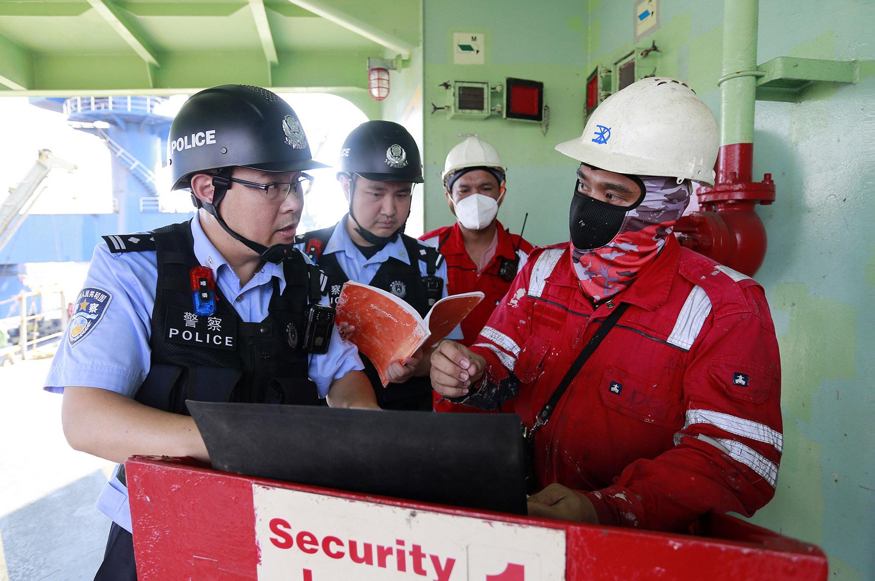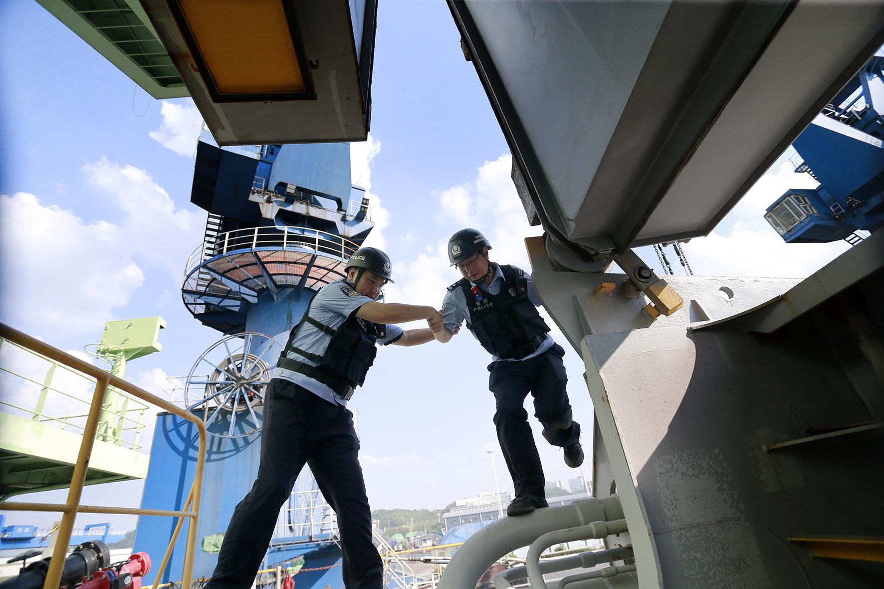 8月19日,南京港邊檢站主動靠前服務,為裝載有2.3萬噸鉀肥的挪威籍“貝利塔”輪量身定制“一船一策”服務舉措,開通“重要物資快捷通道”,積極做好船員及船舶預檢工作,全力保障口岸通關安全暢通。
