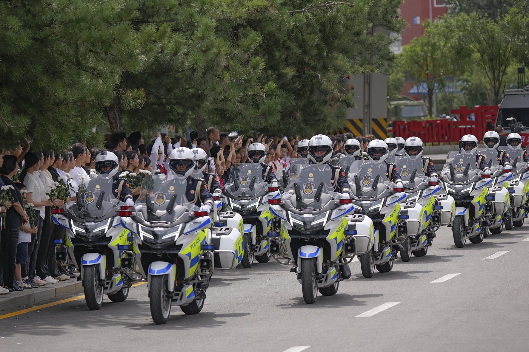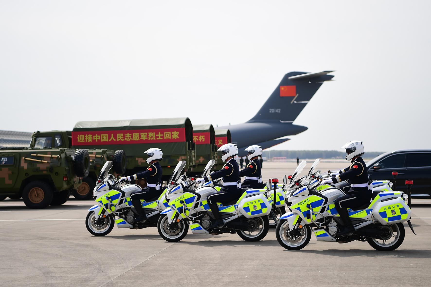 9月12日,第十二批在韓中國(guó)人民志愿軍烈士遺骸回國(guó)。遼寧省沈陽(yáng)市公安局交通管理支隊(duì)科學(xué)謀劃、周密部署,派出精干力量擔(dān)負(fù)志愿軍烈士遺骸車隊(duì)的護(hù)航任務(wù),以最高禮遇迎接英烈回家。