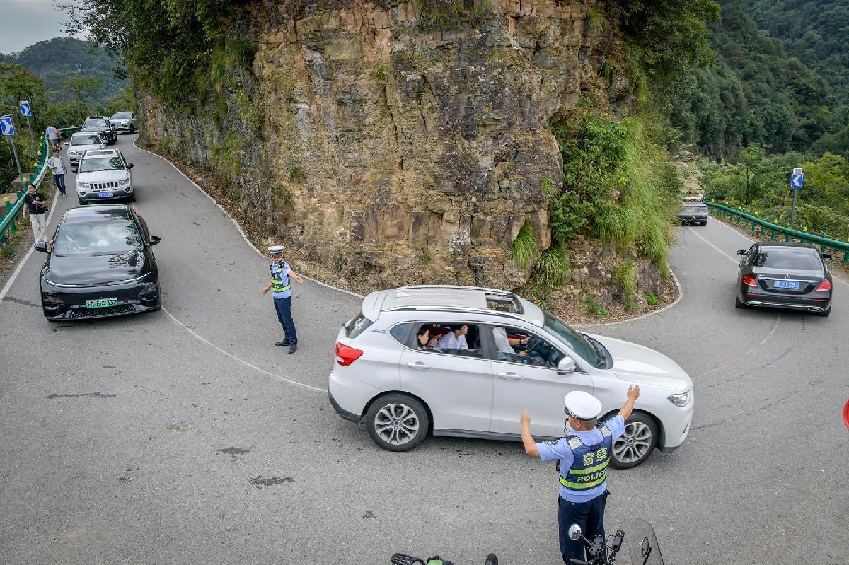10月2日,安徽涇縣“皖南川藏線”迎來客流高峰。涇縣公安局全警動員,采取“機動+定點”的工作方式,在易堵彎道、觀景臺等關鍵部位派駐警力駐點執(zhí)勤。