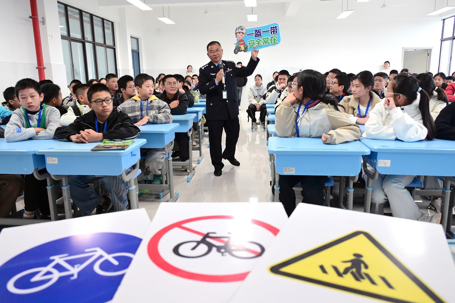 10月20日,安徽省固鎮(zhèn)縣公安局交管大隊(duì)民警來到許慎中學(xué)為學(xué)生們上交通安全課。