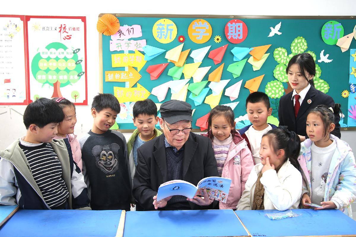 10月28日,江蘇省睢寧縣檢察院72歲退休老黨員郭克強(qiáng)和未檢干警一起來(lái)到新城區(qū)第二小學(xué),開展“‘銀發(fā)力量’ 護(hù)‘未’成長(zhǎng)”普法宣傳。