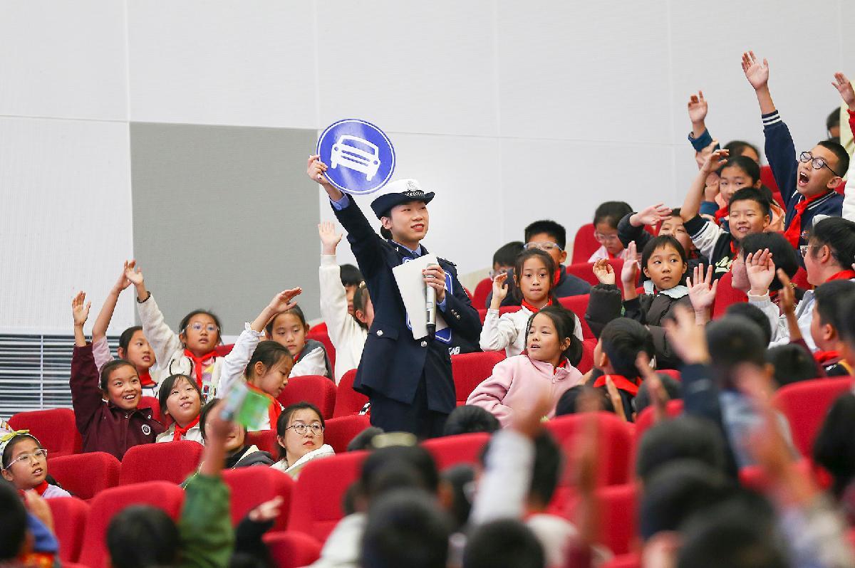 11月13日,安徽省銅陵市公安局交警支隊民警走進京師實驗學校小學部,為400余名小學生上一堂豐富多彩的交通安全課。