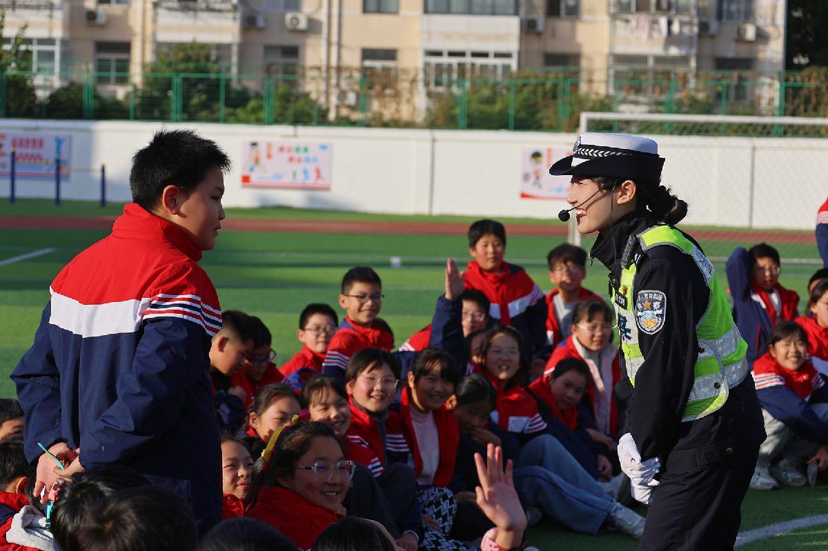12月1日,江蘇省徐州市蘇堤路小學開展“文明交通伴‘童’行”主題活動,邀請被同學們親切地稱為“交警爺爺”的退休警察陳孟軍來校講解交通安全知識。