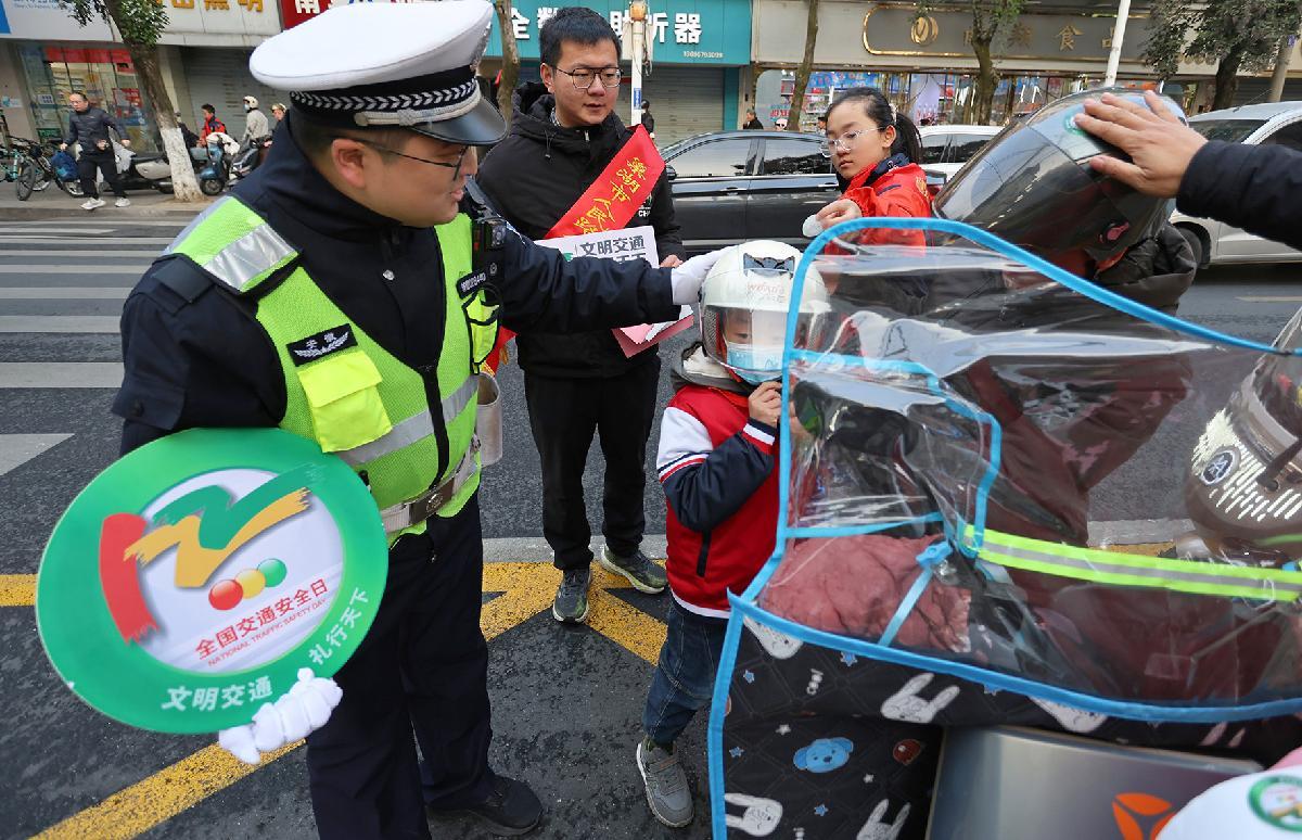 12月1日,安徽省六安市公安局交警支隊高速六大隊聯(lián)合舒城縣公安局開展第14個“全國交通安全日”主題宣傳。