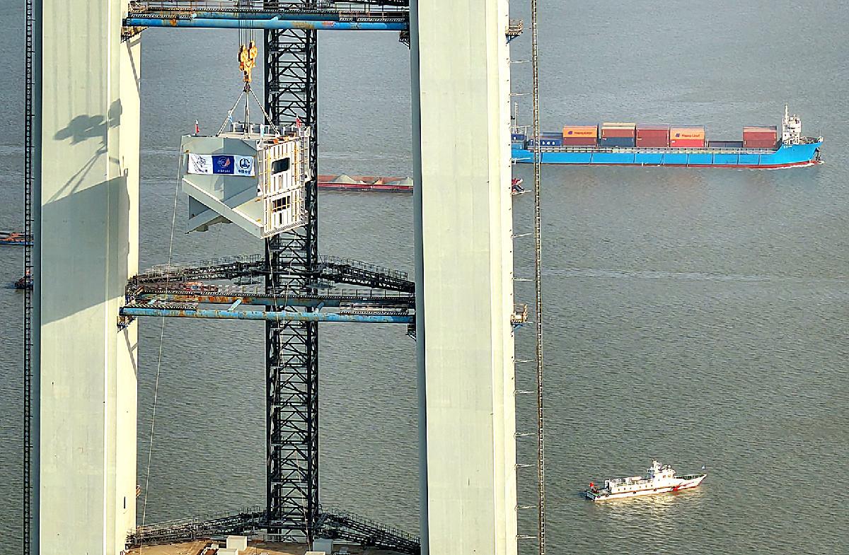 12月1日,江蘇張靖皋長江大橋南航道橋南主塔成功封頂。張家港海事局采取優(yōu)化施工水域警戒力量、深化節(jié)段梁水上運(yùn)輸風(fēng)險(xiǎn)隱患排查、強(qiáng)化智慧立體動(dòng)態(tài)監(jiān)管等一系列有效措施,為國家重點(diǎn)工程建設(shè)保駕護(hù)航。