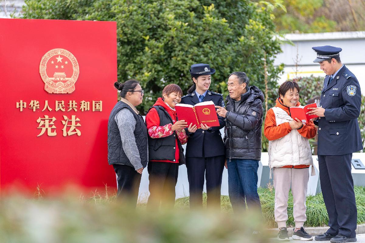 12月2日,在第十二個國家憲法日前夕,上海市公安局崇明分局豎新派出所民警在轄區(qū)法治公園開展“國家憲法日”主題宣傳。