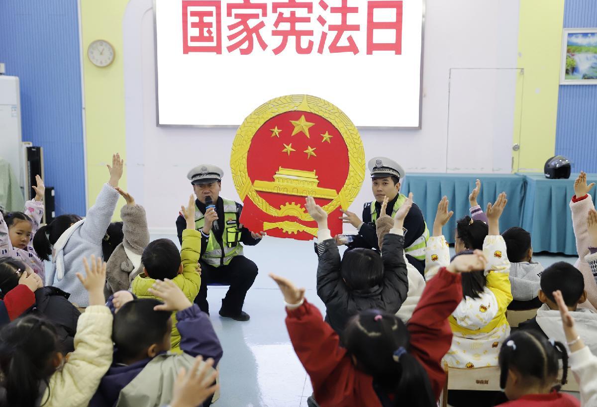 12月2日,安徽省合肥市公安局瑤海分局勝利路派出所民警走進(jìn)轄區(qū)學(xué)校,開展“憲法宣傳進(jìn)校園”主題宣傳。