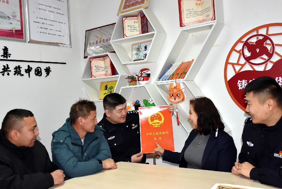 12月2日,新疆維吾爾自治區(qū)克拉瑪依市公安局白堿灘區(qū)分局中興路街道派出所組織普法宣傳隊(duì),開展“憲法宣傳進(jìn)萬家”主題宣傳。