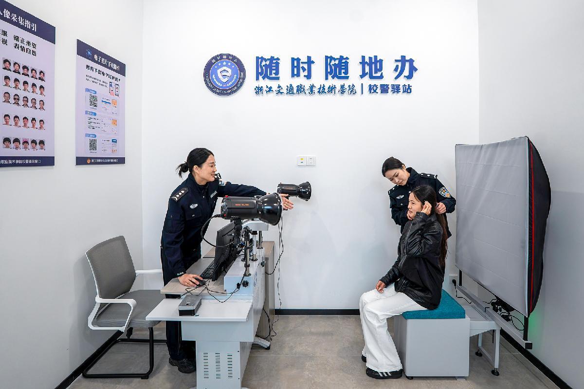 12月9日,浙江省長興縣公安局林城派出所駐浙江交通職業(yè)技術(shù)學(xué)院(長興校區(qū))“校警驛站”工作人員為學(xué)生補(bǔ)辦身份證件。