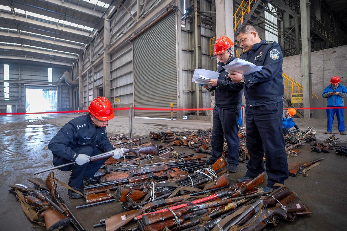 12月20日,浙江省湖州市公安局組織開展全市公安機關(guān)集中銷毀非法槍爆物品及管制刀具活動。