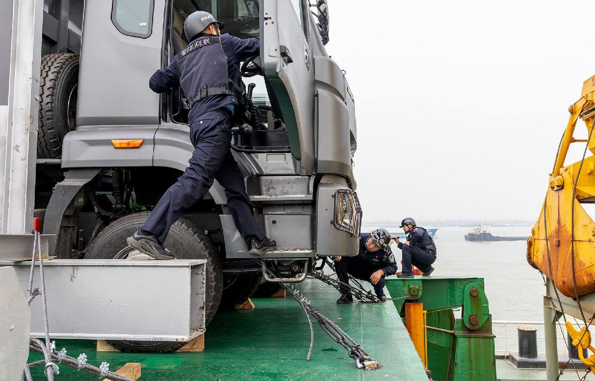 1月5日,長江航運公安局鎮(zhèn)江分局鎮(zhèn)江派出所聯(lián)合鎮(zhèn)江邊檢站民警,在江蘇鎮(zhèn)江經(jīng)開區(qū)大港碼頭為即將開往印尼的“華正海洋”輪提供現(xiàn)場護航,確保服務(wù)“一帶一路”建設(shè)的重點物資安全離港。