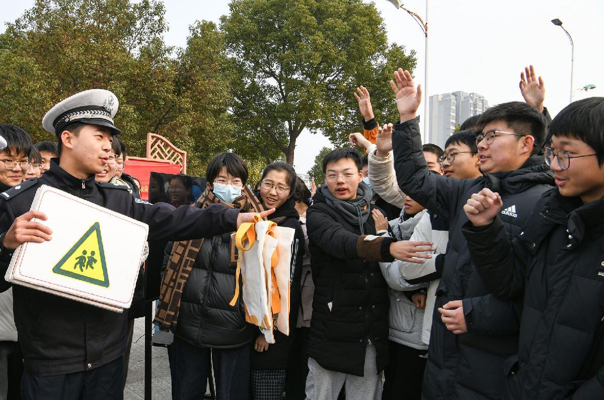 圖為民警與學(xué)生進行交通標(biāo)識競答互動。