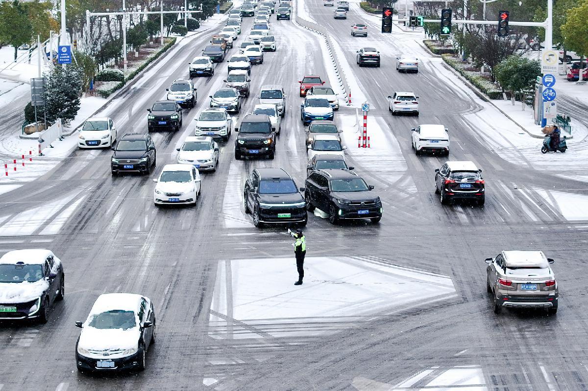 1月20日,安徽省蕪湖市主城區(qū)迎來暴風(fēng)雪天氣。蕪湖市公安局交管支隊(duì)弋江大隊(duì)全警上崗,疏導(dǎo)交通,確保轄區(qū)道路暢通有序。