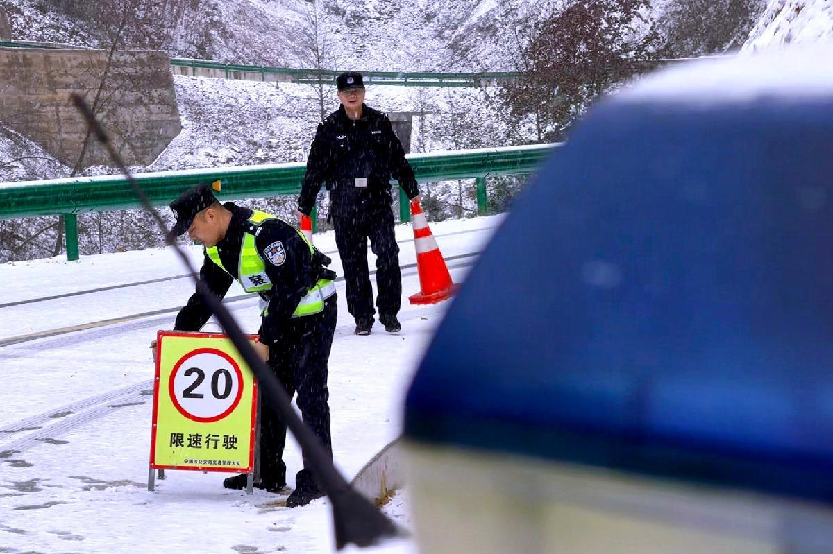 1月20日,安徽省涇縣出現(xiàn)降雪降溫天氣。涇縣公安局交管大隊(duì)組織警力加強(qiáng)S345省道巡邏疏導(dǎo),全力保障路面安全暢通。