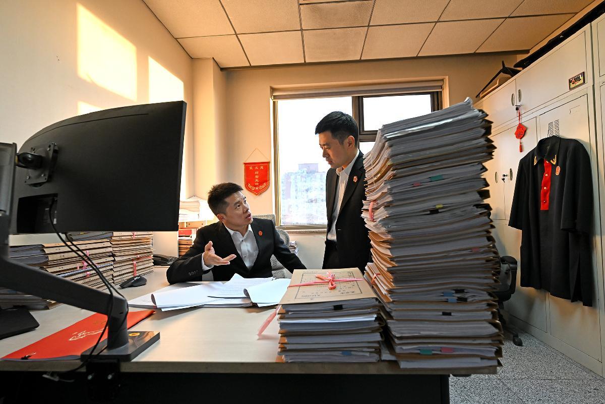 2025年12月23日,北京市朝陽(yáng)區(qū)人民法院望京法庭法官助理劉柳把新收案件的卷宗材料及時(shí)分派給法官。
