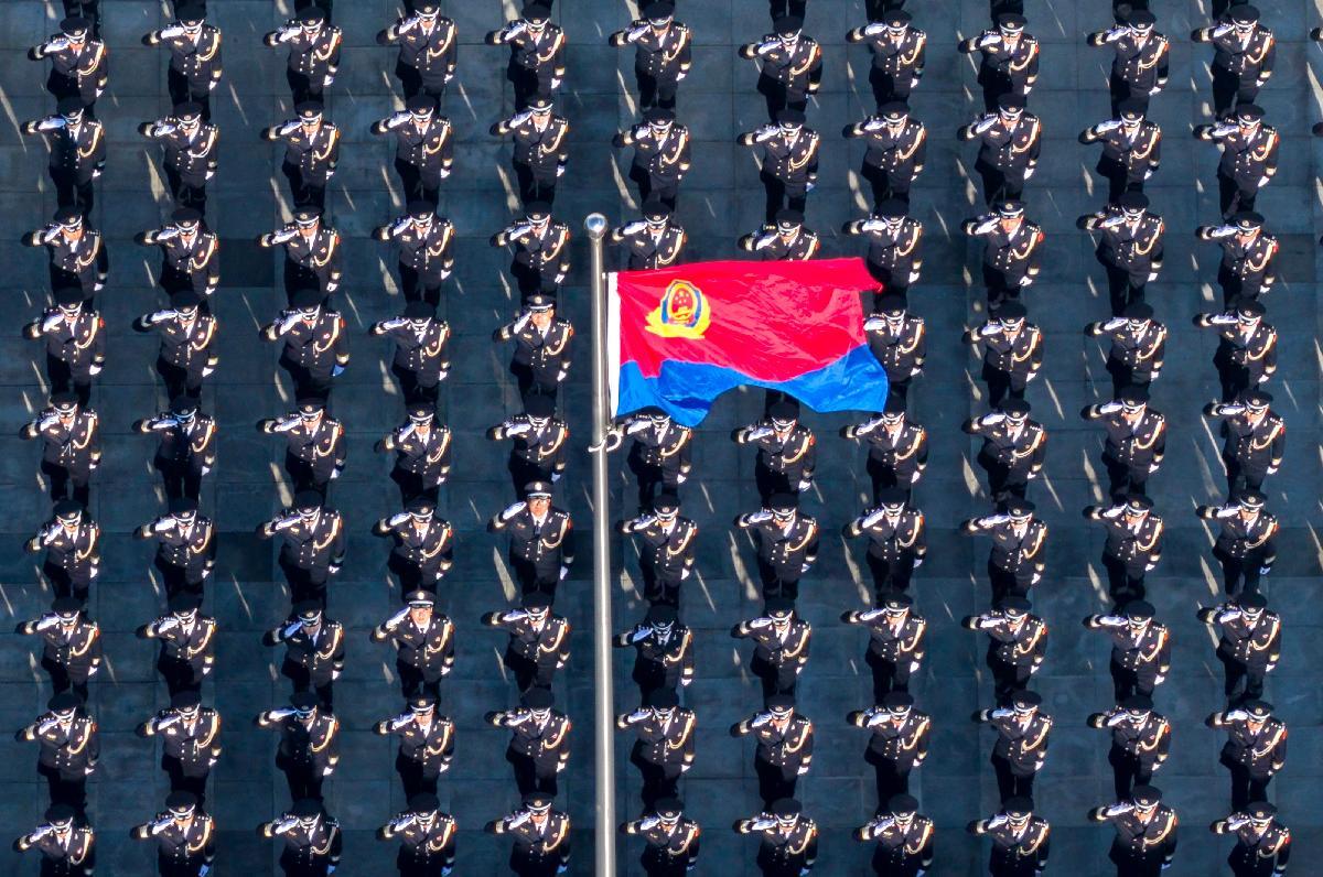 1月10日,浙江省臺州市公安局黃巖分局舉辦升警旗儀式,慶祝第六個中國人民警察節(jié)。