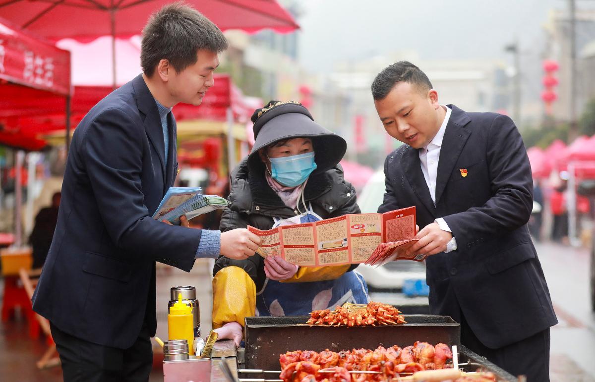 圖為2月3日,司法工作者在金蘭鎮(zhèn)為趕場群眾講解法律知識。