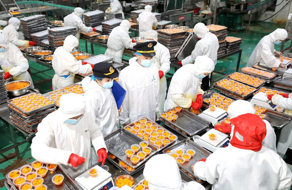 圖為2月10日,市場監(jiān)督管理局工作人員對轄區(qū)食品生產(chǎn)企業(yè)進(jìn)行現(xiàn)場指導(dǎo)把關(guān)。