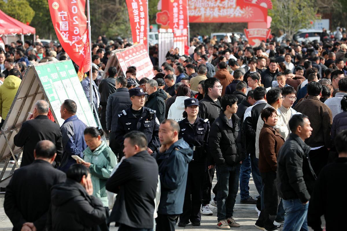 2月23日,安徽省寧國市公安局民輔警在2026年“春風行動”暨就業(yè)援助季系列活動現(xiàn)場巡邏執(zhí)勤。