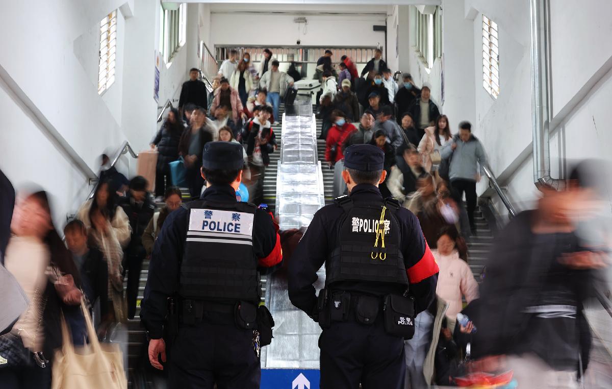 2月23日,春節(jié)假期迎來返程客流高峰。武漢鐵路公安局襄陽公安處襄陽站派出所民警堅守崗位,全力維護站區(qū)治安秩序,守護廣大旅客平安返程。