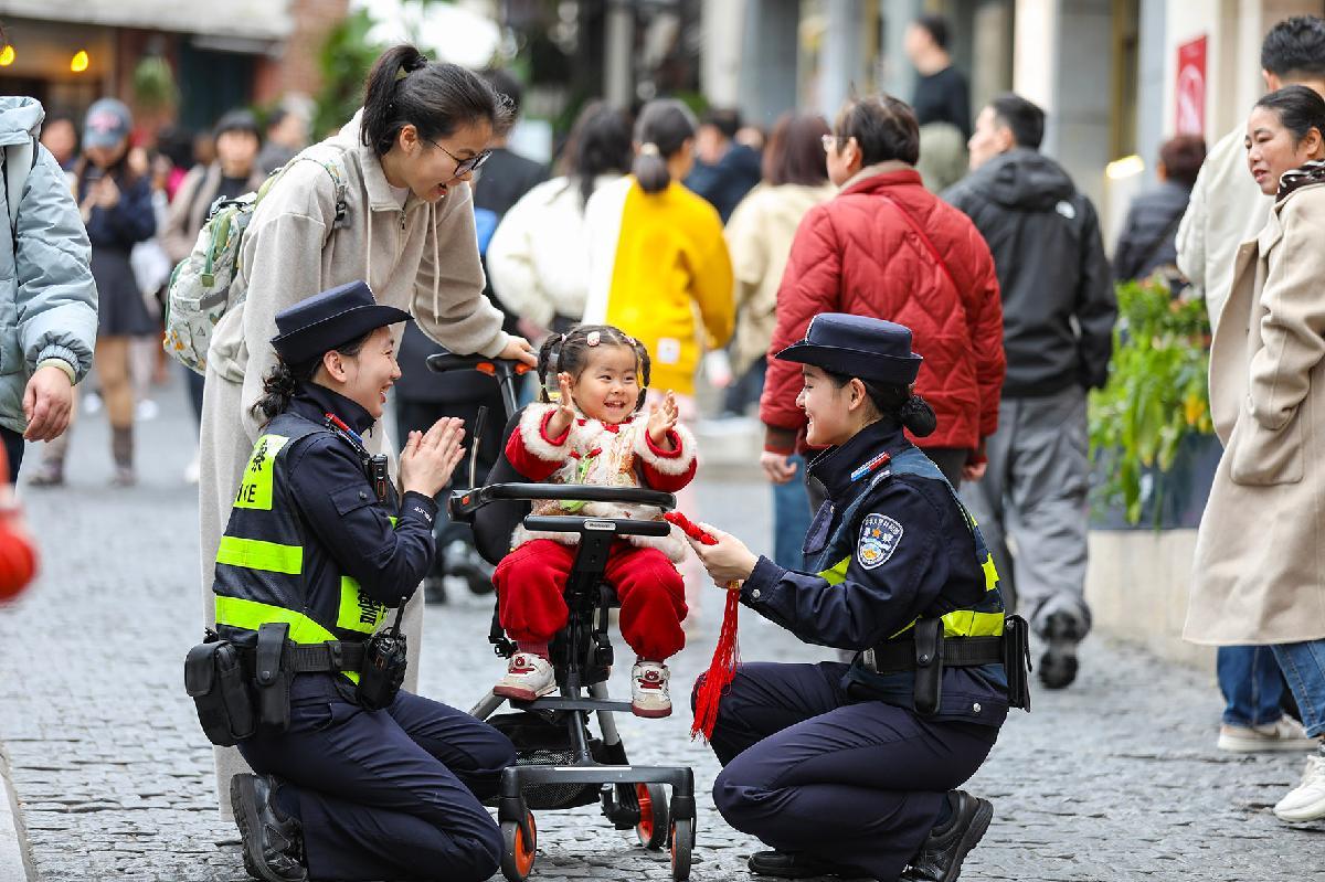 2月17日,浙江省臺州市公安局黃巖分局民警堅守崗位,做好巡邏防控、景區(qū)值守、安全檢查等各項工作,守護群眾度過一個歡樂祥和的春節(jié)。