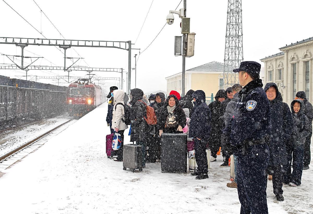 2月22日,吉林省白城市迎來降雪天氣。沈陽鐵路公安局白城公安處以雪為令,啟動惡劣天氣應急處置預案,全面強化站車秩序維護、線路治安巡查工作,確保旅客乘車安全、管內(nèi)線路暢通。