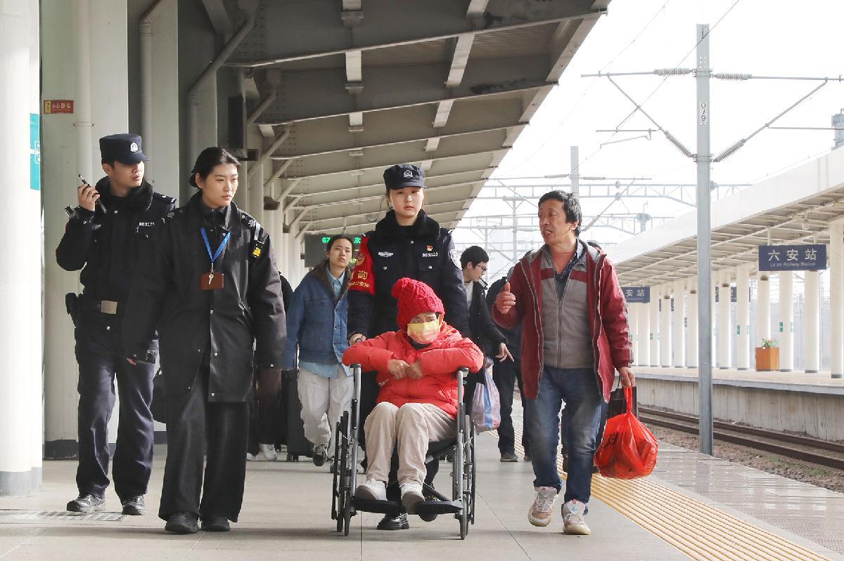 2月22日,安徽省六安火車站迎來返程客流高峰。上海鐵路公安局合肥鐵路公安處六安站派出所攜手六安火車站,持續(xù)優(yōu)化便民服務舉措,全力提升旅客乘車體驗,讓返程之路更舒心、更便捷。