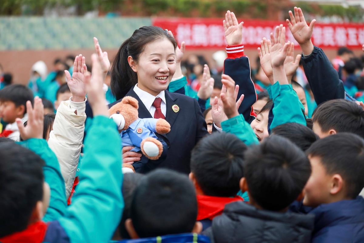 3月3日,安徽省馬鞍山市和縣公安局民警為孩子們講解元宵節(jié)的來歷,同時宣傳未成年人保護相關知識。
